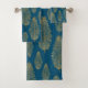 Chic Elegant Teal Blue Gold Fern Leaf Pattern Bath Towel Set