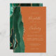 Chic Emerald Green Gold Agate Burnt Orange Wedding Invitation