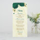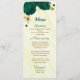 beautiful emerald green flowers and gold leaves elegant wedding menu.