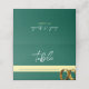 A bold and elegant wedding layout featuring a rich emerald green background with golden wedding rings in the bottom corner. A sophisticated and timeless design, perfect for classic and formal ceremonies.