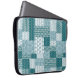 Chic Ethnic Faux Patchwork Pattern, Teal and White Laptop Sleeve