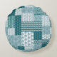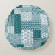 Chic Ethnic Faux Patchwork Pattern, Teal and White Round Cushion