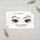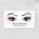 This modern and stilish business card design features a glamourous illustration of a woman's eyes, eyelashes with glitter copper eyeshadow and brows over a classic white background with name or business name and title.
