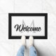 Modern Minimalist Chic Family Monogram Welcome Mat Black White Grey