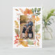This beautiful fall foliage Thanksgiving family photo card features your favourite vertical photograph surrounded by gorgeous watercolor autumn leaves. Personalise these chic picture cards with your fall blessings or holiday message in orange under the autumnal design.