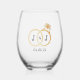 Chic Faux Gold Foil Monogram Wedding Rings Stemless Wine Glass