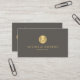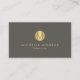 Your initial is elegantly displayed on the faux gold circle for an instant monogram logo on this stylish business card template. Set on a taupe/grey background, the minimal colour palette and clean typeface make this card chic and modern. © 1201AM CREATIVE