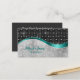 Chic Faux Silver Glitter Black Teal Monogram Appointment Card