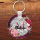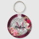 Chic faux Silver Glitter Burgundy Floral monogram Key Ring