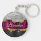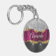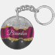Chic faux silver glitter Fuchsia black monogram Key Ring