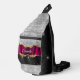 Chic faux silver glitter Fuchsia black monogram Sling Bag