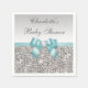 Chic Faux Teal Bow Silver Sequins Baby Shower Napkin