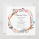 Chic feathers wreath. Boho wedding save the date Invitation