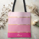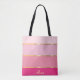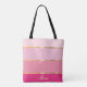 Carry your essentials in style with this chic tote bag, adorned with an array of pink stripes ranging from soft pastels to bold hues. Gold lines separate the colours, adding a touch of luxury to the design. Customise it with your name, monogram, or any text you like, or keep it simple by removing the sample text. This tote bag combines fashion and functionality, making it a perfect accessory for everyday use or a thoughtful gift.