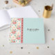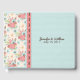 Chic wedding guest book done in a colourful coral and blue mix of flowers, on the spine half of the book, and a robin's egg blue polka dot pattern, on the other half. Lovely mix and match wedding products are available. Personalise the brown text to suit your wedding needs.