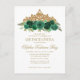Modern Floral Emerald Green Gold Tiara Sparkle Glitter Birthday Quinceañera Invitation