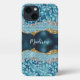 Chic floral glittery Teal Turquoise gold monogram iPhone Case