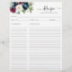 Floral Botanical Greenery Burgundy Maroon Red Terracotta Brown Yellow Purple Violet Pink Kitchen Recipe Sheet Card