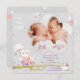 Sweet mum and baby owls, lil flowers + textured grey background illustrated on custom Twins Photo Birth Announcements. You will love the super CUTE & WHIMSICAL owl theme photo card design! All the sample text and photo can be fully personalised with your own wording & picture. Feel free to change the sizes, fonts & colours of the text as well.