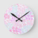 Chic Floral Pink and Teal Pattern Round Clock