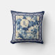Chic floral vase Blue chinoiserie toile monogram Cushion