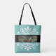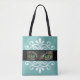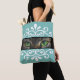 Chic floral vector cat green eyes on teal Tote Bag. Cat eyes can be customised with your favourite horizontal image.