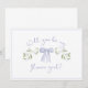 Make your flower girl proposal extra special with this chic and elegant card featuring a delicate blue bow and charming floral design. Perfect for asking the little one in your life to be part of your big day, this card combines a light, airy aesthetic with a sophisticated touch. Printed on high-quality paper, it's a beautiful keepsake for a memorable moment. Ideal for modern brides looking to add a touch of class and style to their wedding preparations.