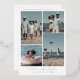 This chic foil happy holidays year in review 5 photo foil holiday card is the perfect simple holiday greeting. The simple design features classic metallic pressed foil typography with a rustic boho feel. Choose silver, gold or rose gold foil text on the front. Personalise the card with 5 photos, your family name, first names, and year. Include a year in review or family newsletter on the back of the card.