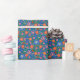 Chic Folk Art Style Floral on Blue Wrapping Paper