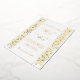 Chic bands of elegant formal gold foil scrollwork in a dimensional sculpted style form a border on either side of this classic design. The back features a complementary scrollwork ornament with space for your initials.
