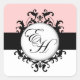 Chic French Monograms Damask Pink Labels. Art and Design by Elke Clarke ©2010. Contact store owner to change the monogram initials at no cost.