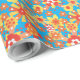 A roll of very stylish Wrapping Paper, with a pattern pattern of red, orange, yellow flowers on a bright turquoise background, from a handpainted paper collage by Judy Adamson.