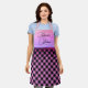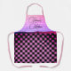 On this stylish apron is an ombre rainbow pink striped foil top where you can personalise it to make it uniquely your own then below that is a black andpink gingham chequered design that completes this chic, enchanting apron.