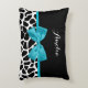 Chic Giraffe Print Aqua Blue Ribbon Bow With Name Decorative Cushion