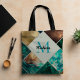 Chic girly faux Glitter gold turquoise green teal geometric squares tote bag. To make it extra special, it is also monogrammed and personalised with name. click the "customise further" link and use the design tool to modify the design if you like. Beautiful, modern and cool tote bag. Show off your personal style, look fashionable, trendy and feel stylish around your friends with a unique design on your tote or customise it over another product of your choice. Whether for valentines day, Christmas or as a gift in general it makes a great gift idea for any girl who loves modern sparkly things. PLEASE NOTE: These are flat printed graphics - no real glitter, jewels or raised parts