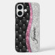 Chic girly faux Silver glitter black pink monogram Case-Mate iPhone Case