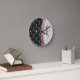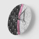Chic girly faux Silver glitter black pink monogram Round Clock