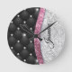 Easily personalise this trendy, chic bling Luxury Wall Clock design featuring elegant girly faux silver and pink glitter and rhinestones bling with black tuffted design. This makes the perfect sweet 16 birthday, wedding, bridal shower, anniversary, baby shower or bachelorette party gift for someone that loves glam luxury and chic styles. Show off your personal style and upgrade your wall decor with this glamourous personalised trendy wall clock.
