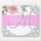 Chic & Girly Floral White Pink Gray Monogram Name Mouse Mat
