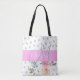 Chic & Girly Floral White Pink Grey Monogram Name Tote Bag