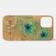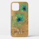 "Chic Girly Gold Glitter Peacock Feathers Monogram Monogram iPhone 12 Case." Graphically designed by internationally licensed artist, Audrey Jeanne Roberts, copyright.