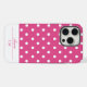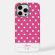 Add a touch of playful charm to your phone with this chic iPhone 15 Pro Max case featuring a pink and white white polka dot pattern. Designed for those who love a fun and feminine style, this tough protective case is also customisable to make it uniquely yours. Personalise it with your first name in a beautiful script, and add your initials in a stylish monogram for an extra dose of sophistication. Also makes a great gift for birthdays and all occasions.