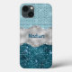 Chic girly teal mint green glitter silver monogram Case-Mate iPhone case