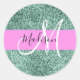 Chic Glam Pink Green Glitter Sparkle Name Monogram Classic Round Sticker