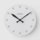 Modern chic glittering light grey colour stars on dust silver Wall Clock. Sunrise text can be personalised.