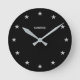 Chic Glittering Silver Stars on Black Round Clock
