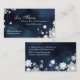 White faux fabric flowers and elegant swirls + rustic textured background in shades of navy blue illustrated on custom Business | Profile Cards. Unique & whimsical floral cards you can easily personalise for your FLOWER BUSINESS or HANDMADE JEWELRY BUSINESS! Feel free to change the colours, sizes & fonts of the text as well. ((Contact ujean4791@gmail.com for custom work and/or matching items.))