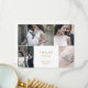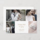 This chic gold 4 photo template thank you card is perfect for a modern wedding. The simple design features classic minimalist gold and white typography with a rustic boho feel. Customisable in any colour. Keep the design minimal and elegant, as is, or personalise it by adding your own graphics and artwork. Personalise the back of the card with your names, and a thank you message. Alternatively, leave the thank you message template section blank to hand write a personalised note on each card after they arrive. These cards can be used for a wedding, bridal shower, or any special event.