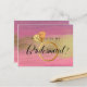 Ask your family and friends to be a part of your wedding with these chic bridesmaid proposal postcards featuring gold and pink stroke and calligraphy script. Personalise with a name and message on the back.
