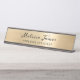 Chic Gold Brushed Metal Black Script Name Desk Name Plate